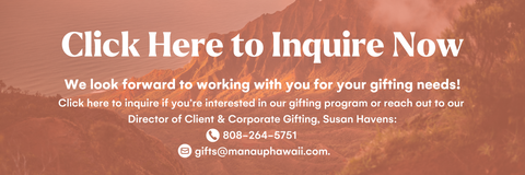 These small business owners help foster high-quality jobs, agricultural sustainability, and a regenerative culture of entrepreneurship in our local community. In other words, when you are purchasing custom gifts from Hawai'i, you are supporting small Hawai’i makers and reinvesting into what makes our Islands special.